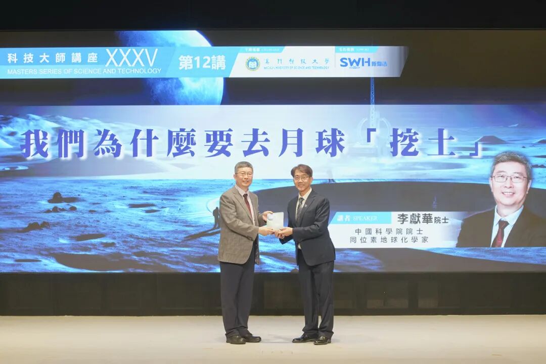中國科學院院士、同位素地球化學家李獻華院士於澳科大談「我們為什麼要去月球『挖土』 」 由澳門科技大學主辦的科技大師講座「我們為什麼要去月球『挖土』」,於2024年5月8日下午在大學 D 座禮堂成功舉辦。本場講座邀請到中國科學院院士、同位素地球化學... 2024/05/17